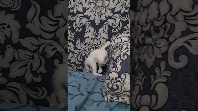 Смешные котята играют возле мамы