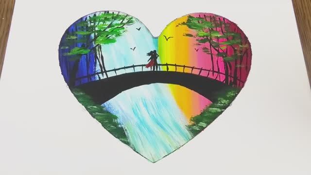 РАЗВИВАШКА для детей и родителей! Картина в виде сердца "Мост" // Акриловая живопись!
