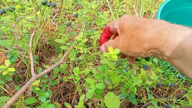 Отличный урожай черники . Набрал спелой ягоды.