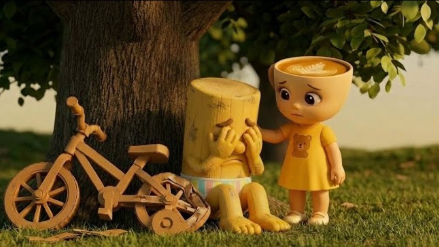 Не плач Тунг Тунг Сахур, Балерина Капучина помогает ему сделать новый велосипед.