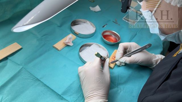 Как выделяют графты для пересадки волос при шовном методе?
