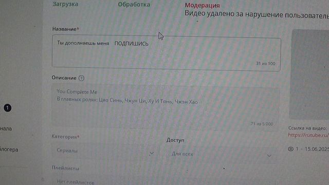ОБРАЩЕНИЕ К МОДЕРАТОРАМ : Восстановите мой ролик " Ты дополняешь меня "