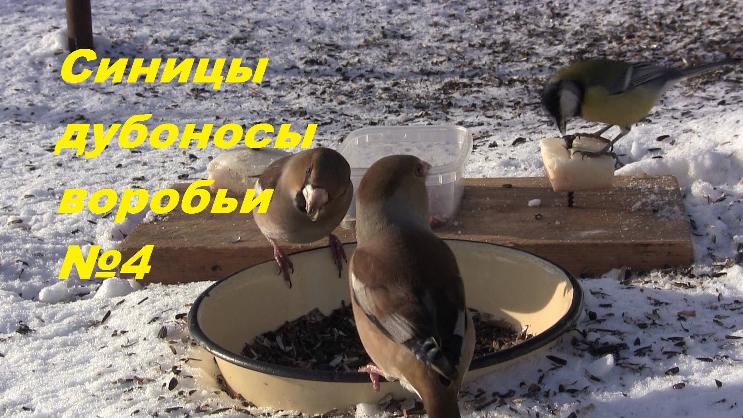 На кормушке: Синицы, дубоносы, воробьи. 8 февраля 2025