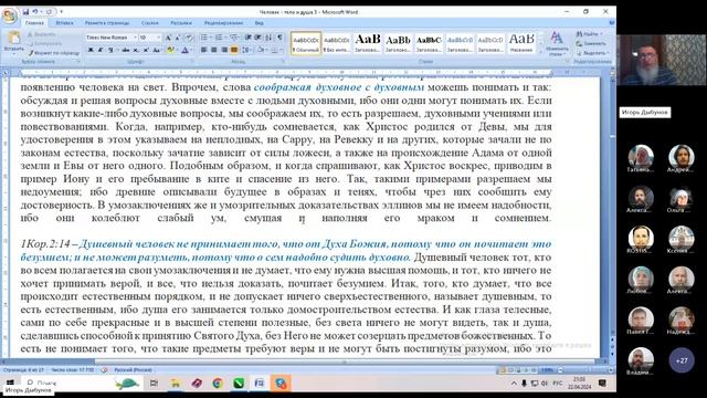 22.04.2024. Книга Бытия. Дух, душа и тело (продолжение). Игорь Дыбунов.