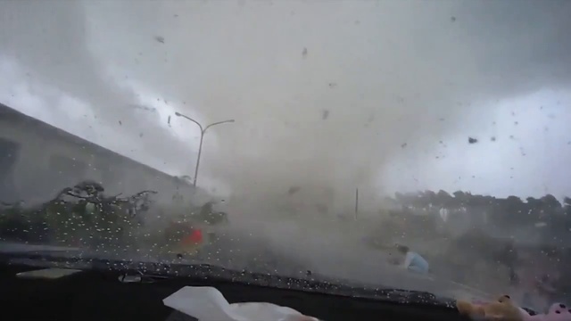 Ураган в средней Азии унес автомобиль посреди улицы.