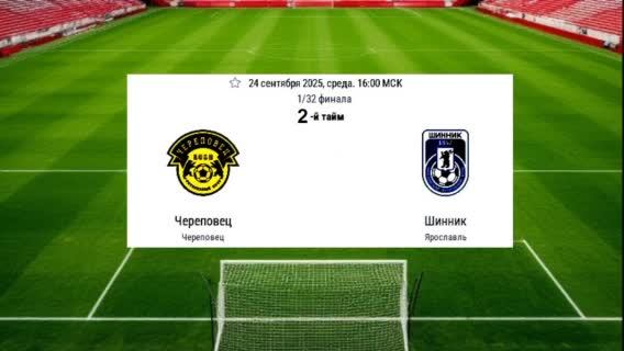 СПОРТ . ФУТБОЛ . КУБОК РОССИИ . ПУТЬ РЕГИОНОВ. 1/32 ФИНАЛА. Череповец - Шинник 2 тайм. 38' 0 -1 Илья Прохоров Максим Андреев 1:1 51' 74 1-2 Илья Стефанович 85' 1-3 Илья Стефанович 90+1' 1-4 Тимофей Шипунов По итогу матча Шинник выходит в 1/16 Кубка.