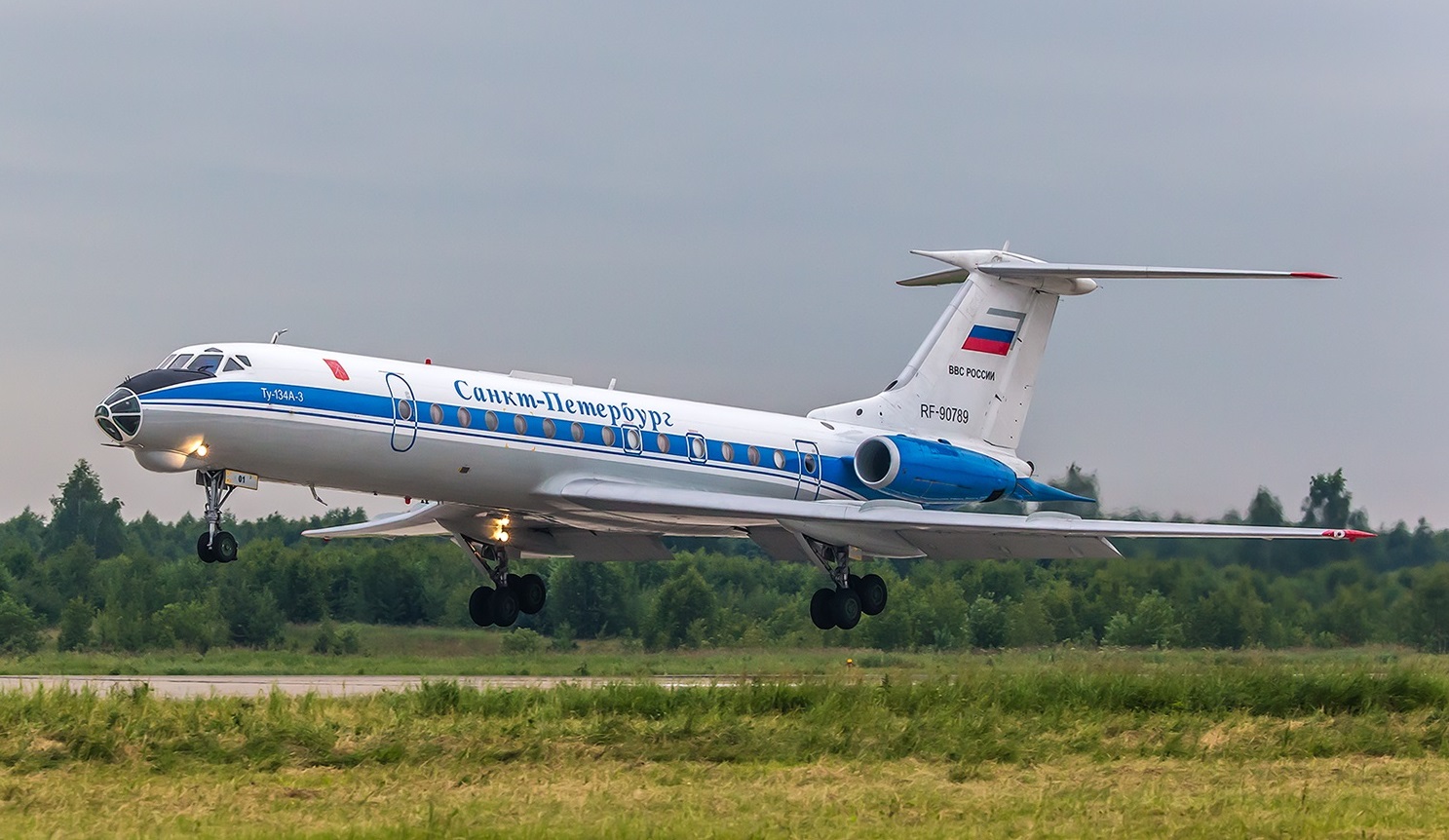 Две посадки Ту-134АК RF-90789 №01 с надписью"Санкт-Петербург"