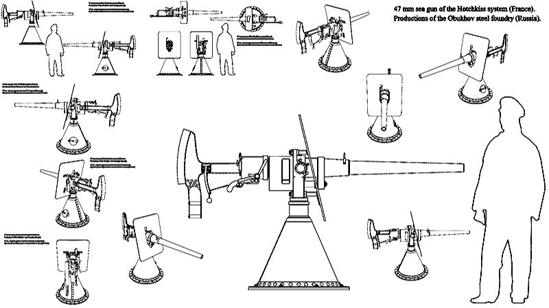 47мм морская пушка Гочкиса. Чертёж. 47mm sea gun of the Hotchkiss system.