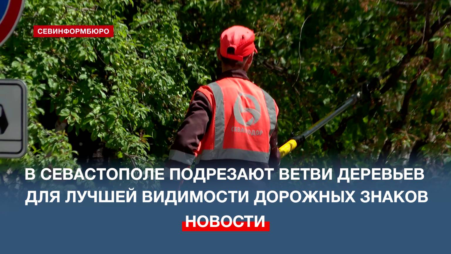 В центре Севастополя подрезают ветви деревьев для лучшей видимости дорожных знаков