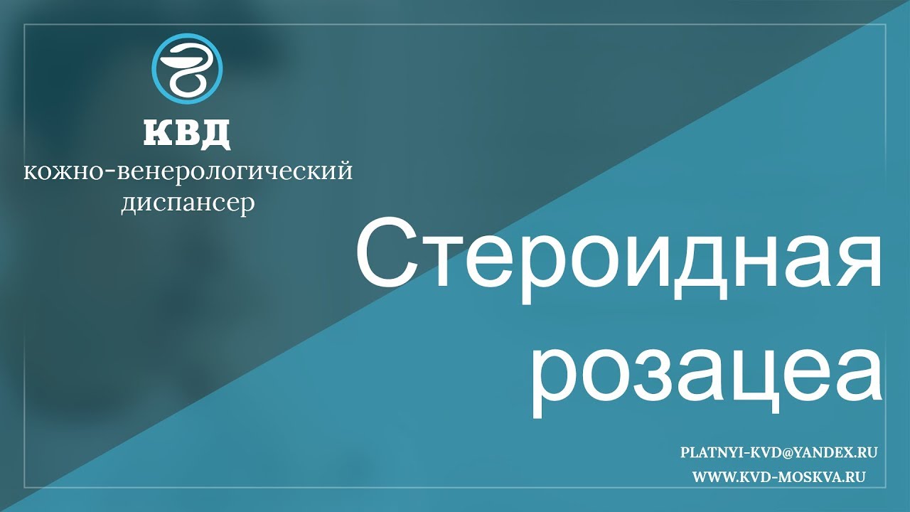 Стероидная розацеа - это болезнь кожи лица, которая является одним из вариантов розовых угрей. Ее синонимы: болезнь стюардесс, дерматит периоральный, дерматит лица стероидный. Подробнее - https://kvd-moskva.ru/steroidnaya-rozacea/ Для подробной консультации по этому вопросу, обращайтесь в платный центр КВД-Москва. Наши телефоны: 8 (495) 642-30-37, 8 (495) 532-66-57 Наш e-mail: platnyi-kvd@yandex.ru Наш сайт: http://kvd-moskva.ru