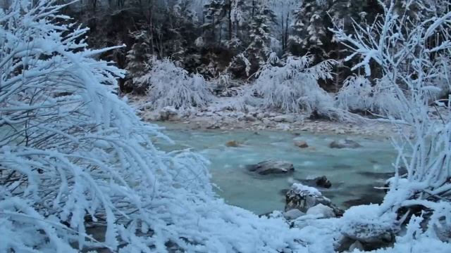 Морозное утро на берегу лесного ручья. Расслабляющая музыка воды, для сна, отдыха и релаксации.
