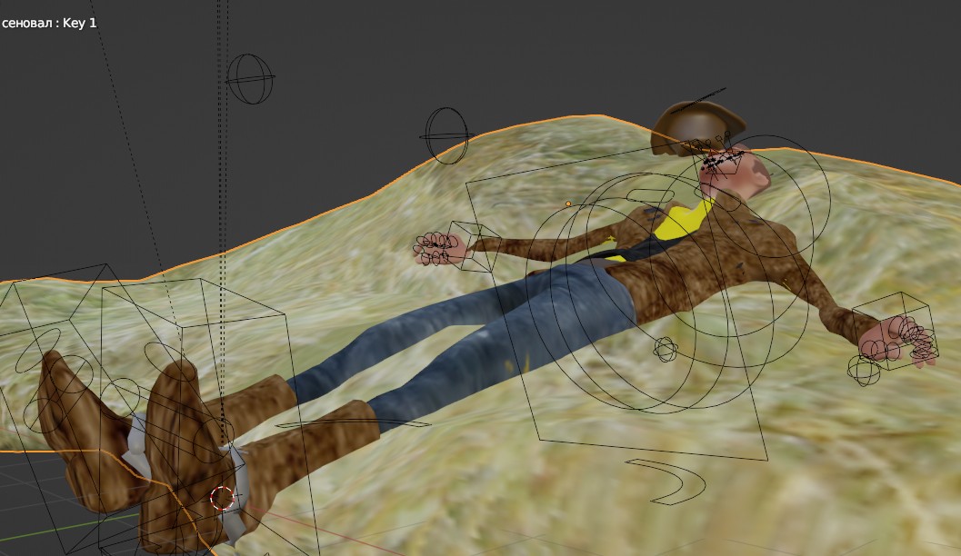 BLENDER 3.6 Заготовка анимации в Сцену 3 персонаж на сеновал