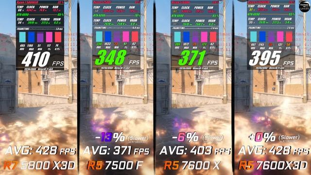 Ryzen 7 5800X3D vs 5 7500F vs 5 7600X vs 5 7600X3D / Test in 8 Games / 1080p / RTX 4090