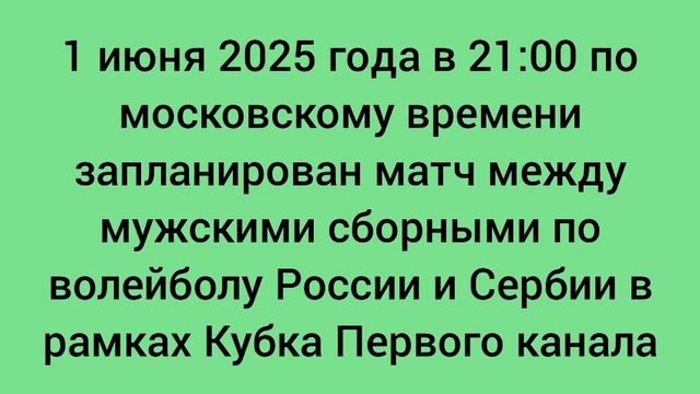 Сегодня, 1 июня пройдет Кубок Первого канала среди мужчин в Белграде. Сербия - Россия. Лето