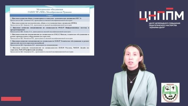 Республиканский проект «Педагогический практикум» продолжает транслировать лучшие практики методических служб образовательных организаций, ставших лауреатами на республиканском конкурсе «Лучшая методическая служба». В выпуске проекта рассматриваются подходы к организации современной методической деятельности образовательных учреждений и тенденции ее развития. Заведующий методическим кабинетом Чебоксарского профессионального колледжа им. Н.В. Никольского Анастасия Николаевна Иванова расскажет о роли методических служб образовательных учреждений СПО в современном профессиональном образовании, на примере организации работы методического кабинета колледжа. «Методическая работа в нашем колледже является одним из основных видов профессиональной деятельности преподавателей. Субъектами методической работы выступают как директор и заместители колледжа, так и преподавательский состав, а также методическая, учебная, воспитательная и производственная части», - делится Анастасия Николаевна.