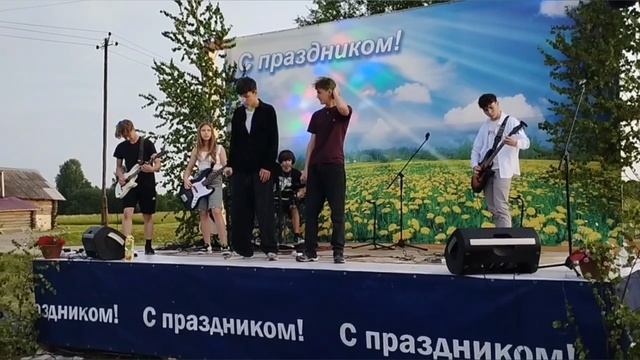 Кавер-группа "Нарисованная жизнь". Выступление в д.Акаты.