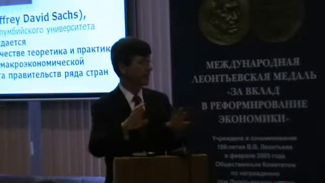 Ответы на вопросы после лекции Джеффри Сакса в Леонтьевском центре в Санкт-Петербурге. Джеффри Дэвид Сакс, ректор Института Земли Колумбийского университета, был представлен к награждению в 2008 году за выдающиеся заслуги в качестве теоретика и практика рыночных реформ и макроэкономической стабилизации, консультанта правительств ряда стран. Answers for the questions after lecture of Jeffrey Sachs at Leontieff's center in Saint-Peterburg Jeffrey David Sachs is an American economist and Director of the Earth institute at Columbia University. One of the youngest economics professors in the history of Harvard University, Sachs became renowned for implementing economic shock therapy throughout the developing world and in Eastern Europe, and subsequently for his work on the challenges of economic development, environmental sustainability, poverty alleviation, debt cancellation, and globalization.