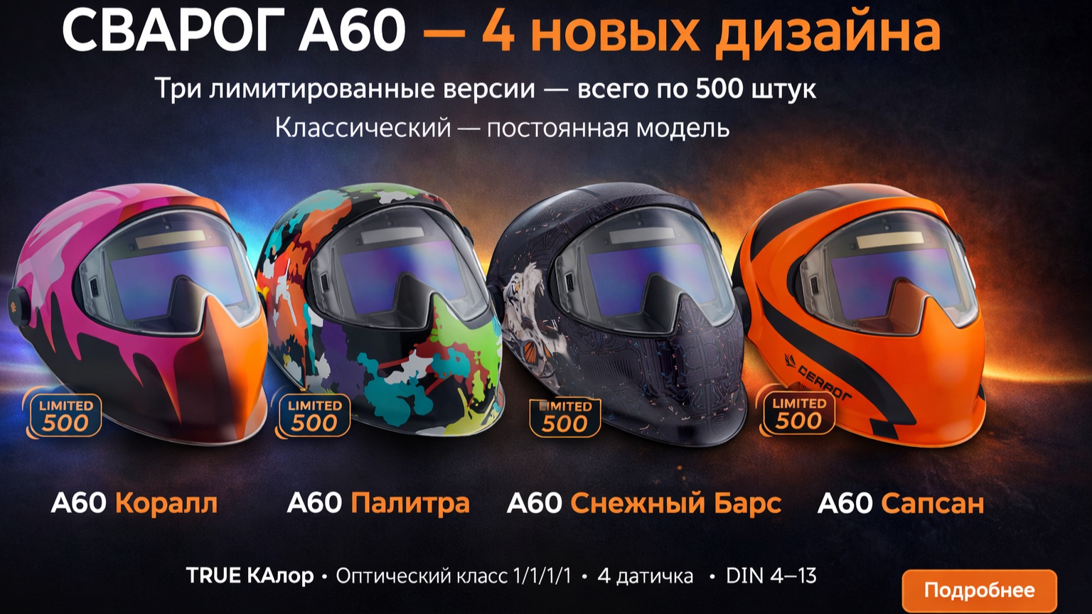 Обзор сварочной маски СВАРОГ A60 — 4 дизайна, TRUE КАлор, фотохром В этом видео подробно разбираю сварочную маску СВАРОГ A60: показываю светофильтр, органы управления, режимы работы и комплектацию. Модель представлена в четырёх вариантах дизайна. Три из них — лимитированная серия, каждого выпущено по 500 штук. После распродажи повторяться не будут. Классический оранжевый — постоянная модель. Основные характеристики: — Технология TRUE КАлор — естественная цветопередача — Оптический класс 1/1/1/1 — 4 оптических датчика дуги — Диапазон затемнения DIN 4–13 — Скорость срабатывания 0,033 мс — Минимальный ток TIG — от 2 А — Функция «Фотохром» — плавное просветление — Режим прихваток — Гарантия производителя 3 года Подходит для MMA, MIG/MAG, TIG, плазменной резки и шлифовки. В ролике показываю, как работают настройки чувствительности и задержки просветления, а также рассказываю о реальном комфорте при работе. Если выбираете современную автоматическую маску — смотрите обзор полностью.
