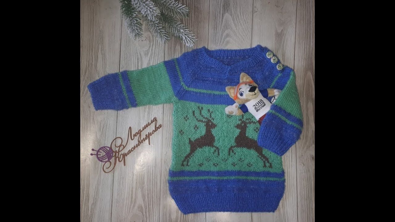 АРХИВ. Мастер класс"Детский джемпер с оленями", реглан, вырез горловины. ЧАСТЬ 2