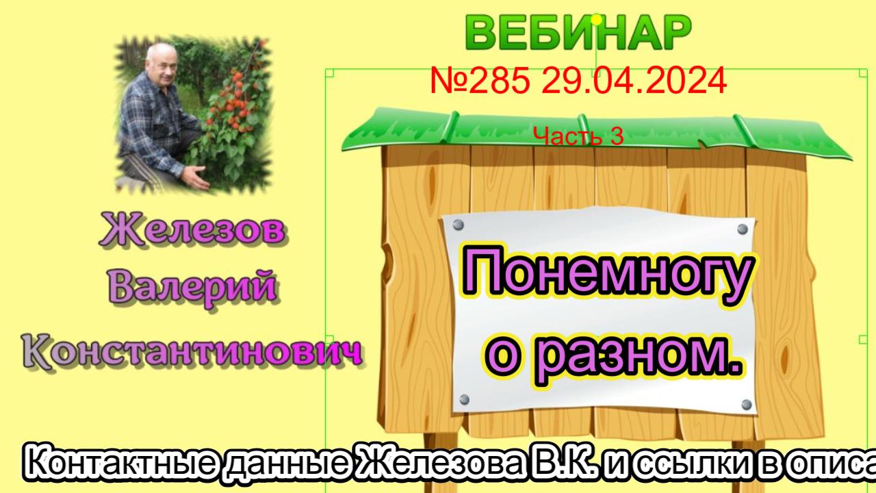 Комментарии и вопросы можно оставлять в гостевой комнате Валерия Константиновича - http://sadsib.narod.ru/gb/ Телефон Железова В.К.: +7 960 776 86 72 Сайт Железова В.К.: https://sad-sib.ru/ Эл. Почта: jelezovsadsib@mail.ru - Группа в ОК - https://ok.ru/jelezovsadsib - Группа в ВК - https://vk.com/jelezovsad - https://zen.yandex.ru/id/5a4727b2168a915b10779daf Чат в WhatsApp: https://chat.whatsapp.com/LLFENhq7J7h7YICU8uPRkl Чат в Телеграм: https://t.me/+IXSEa_e9wchkZjFi Садоводство по Железову на Youtube: https://www.youtube.com/channel/UCJqMclLm9z4lapERsEM6NPA Садоводство по Железову на Rutub: https://rutube.ru/channel/23786837/ Долматов Валерий Александрович телефон: +7 919 332 12 19 (лак мастика) Уральские саженцы от Галины Лотенковой: https://lotenkov.info/#rec537216072 Канал Лотенкова О.Ю.-Долматов В.А.-Железов В.К.: https://www.youtube.com/channel/UCZ1mqSFbgXFQE585FSiwxBQ