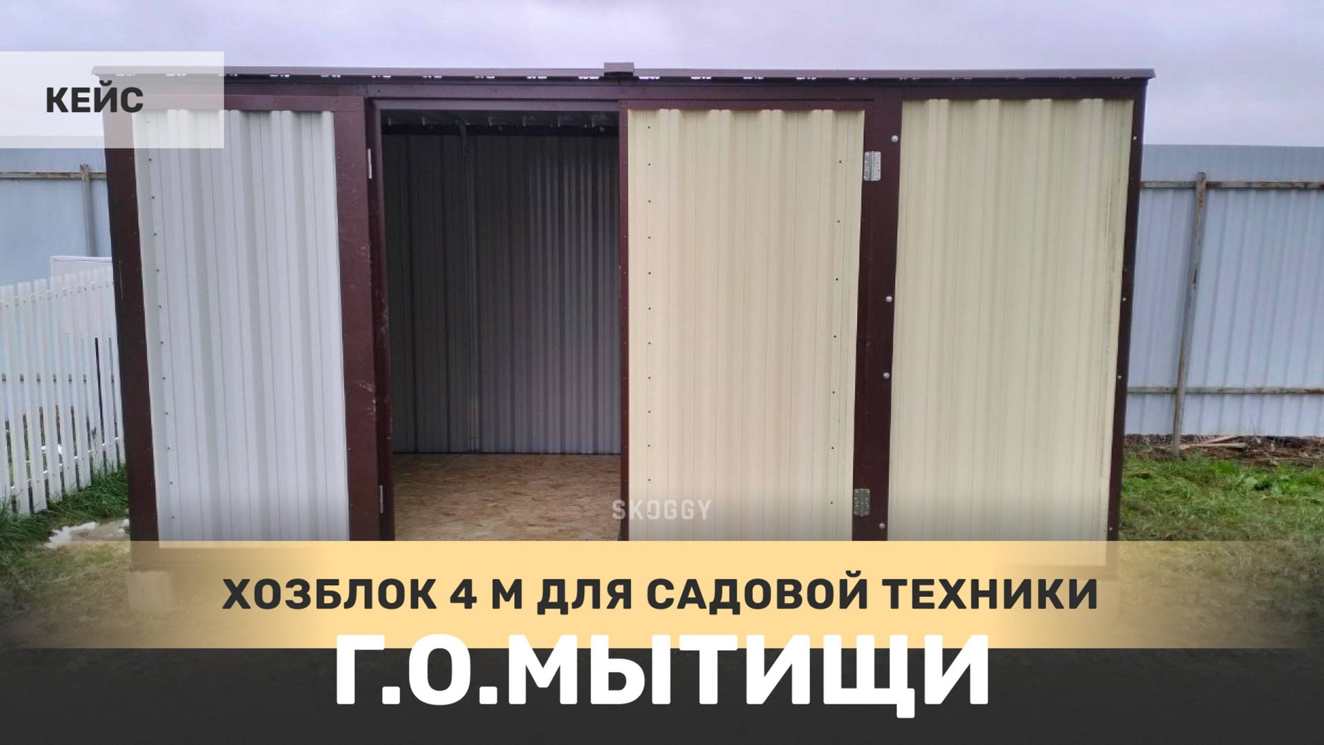 Изготовили для заказчицы стандартный 4-метровый хозблок для хранения садовой техники и инвентаря с плоской крышей и боковой воротной группой в красивой комбинации цветов RAL 1015 «слоновая кость» и шоколадно-коричневого RAL 8017. Дополнительно хозблок укомплектован прямым стеллажом с двумя полками, системой хранения инвентаря, пандусами и системой освещения на солнечной батарее. Сайт: https://skoggy.ru Группа ВК: https://vk.com/skoggy Дзен: https://zen.yandex.ru/skoggy ОК: https://ok.ru/group/70000000874288 YouTube: https://www.youtube.com/@skoggyru Телеграм: https://t.me/skoggyru