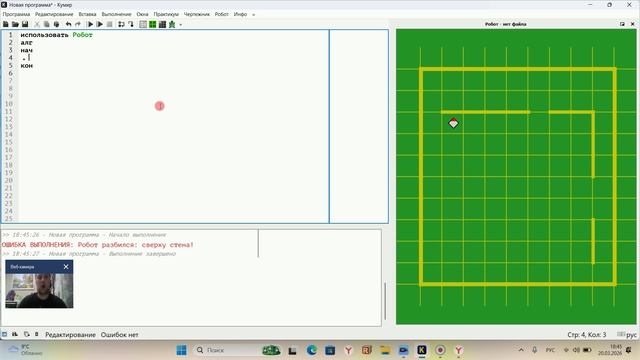 Разбор задания №15 по подготовке к ОГЭ, работа в системе КуМир с использованием школьного алгоритмического языка с русской лексикой и встроенным исполнителем Робот