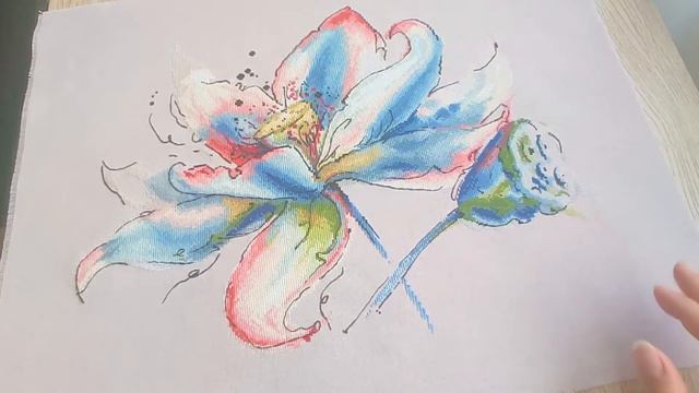 Новое видео о процессе вышивки лотоса по авторской схеме Юлии До