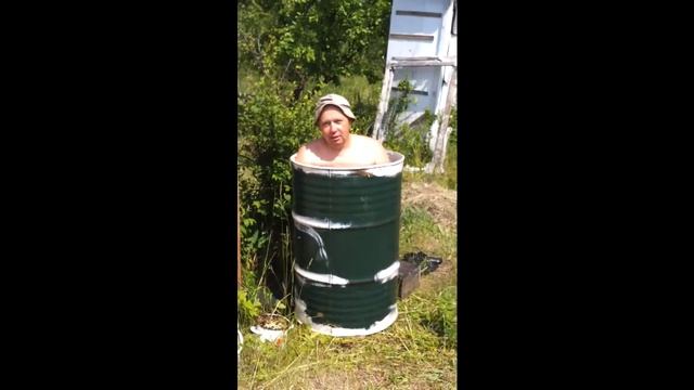 На 35 градусной жаре в саду, единственное спасение это бочка с водой из скважины.