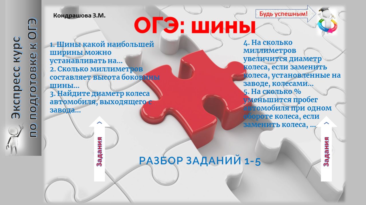 Шины: за несколько минут объясню решение первых пяти задач ОГЭ.