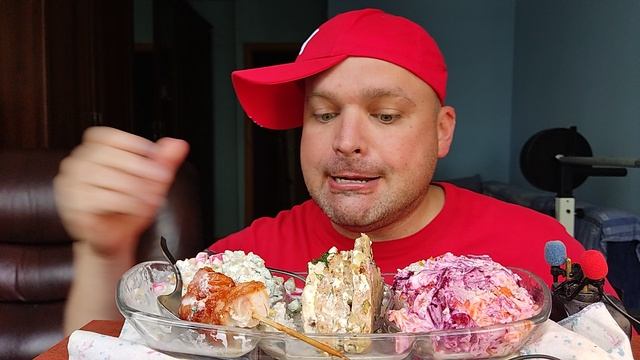 Обжор печёночный пирог, курица по азиатски и салаты