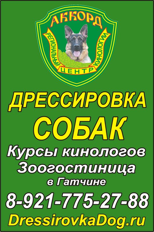"Аккорд", региональный центр кинологии, дрессировка собак в Гатчине. Зоогостиница.