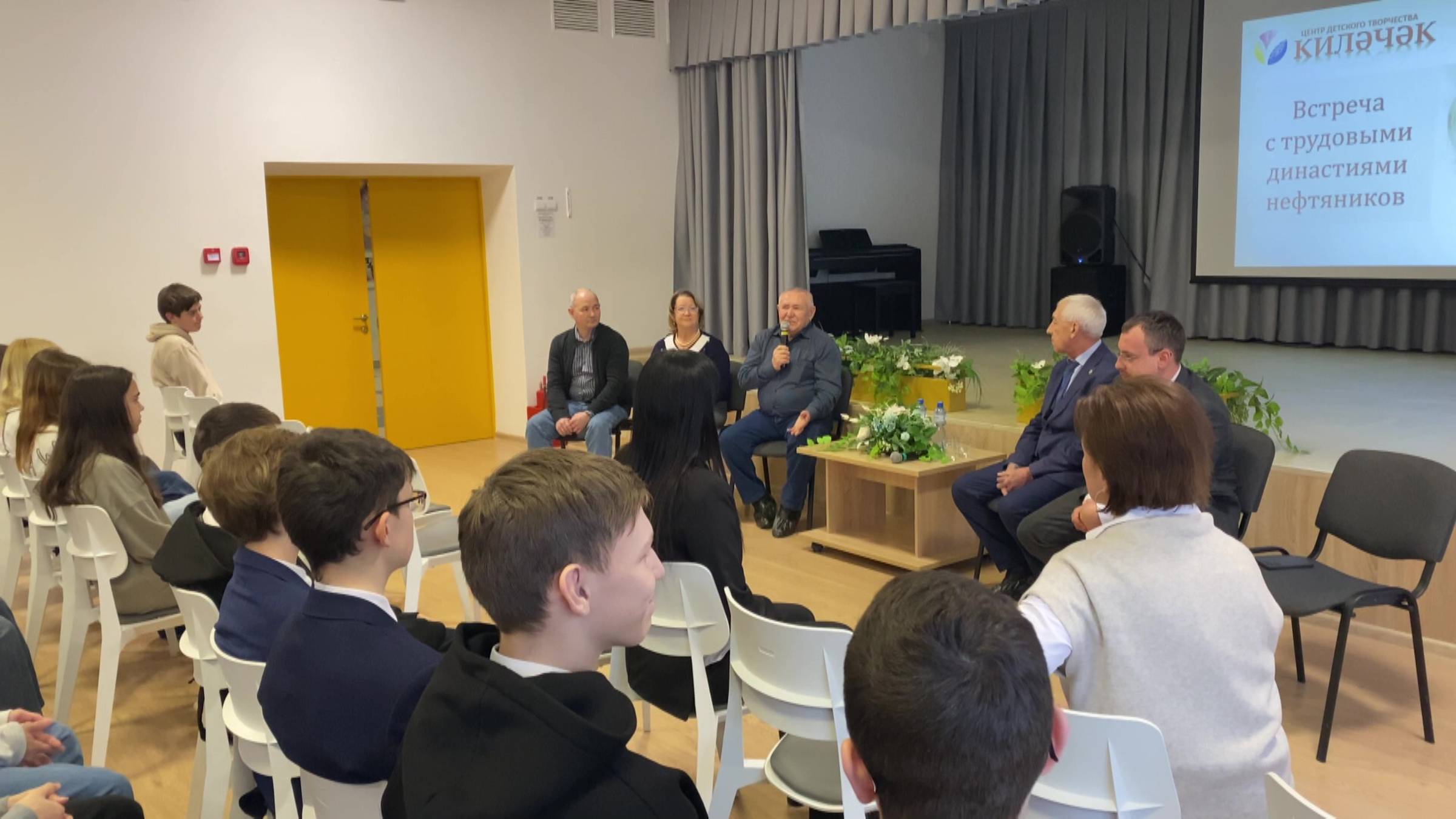 Мероприятие, направленное на профориентационную работу с учащимися, прошло в Центре детского творчества «Килэчэк». Гостями стали две семьи, где представители разных поколений поделились историями о своем трудовом пути. Аудитория – ученики 8-10 классов, перед которыми в скором будущем встанет выбор профессионального пути.