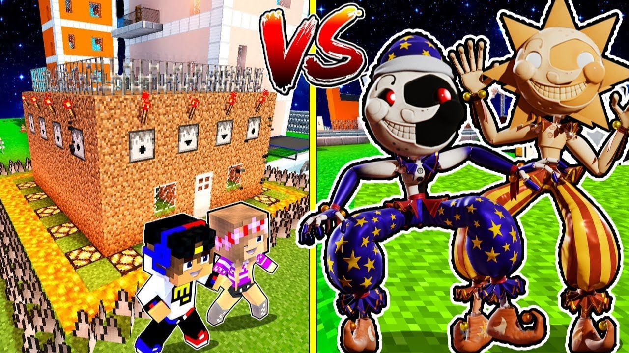 ЗАЩИЩЕННЫЙ ДОМ НУБА И ПРО ПРОТИВ СОЛНЦЕ И ЛУНЫ ФНАФ 9 в МАЙНКРАФТ ! ДЕВУШКА ВИДЕО ТРОЛЛИНГ MINECRAFT