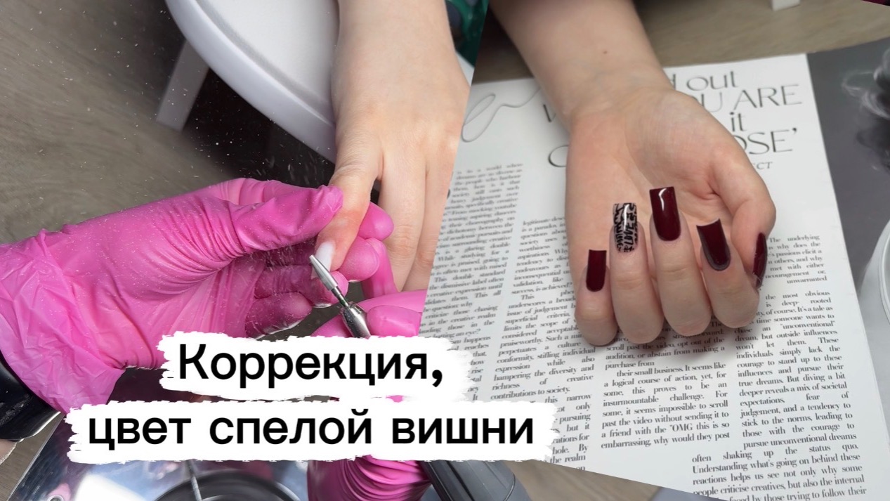 Коррекция ногтей, цвет спелой вишни🍒