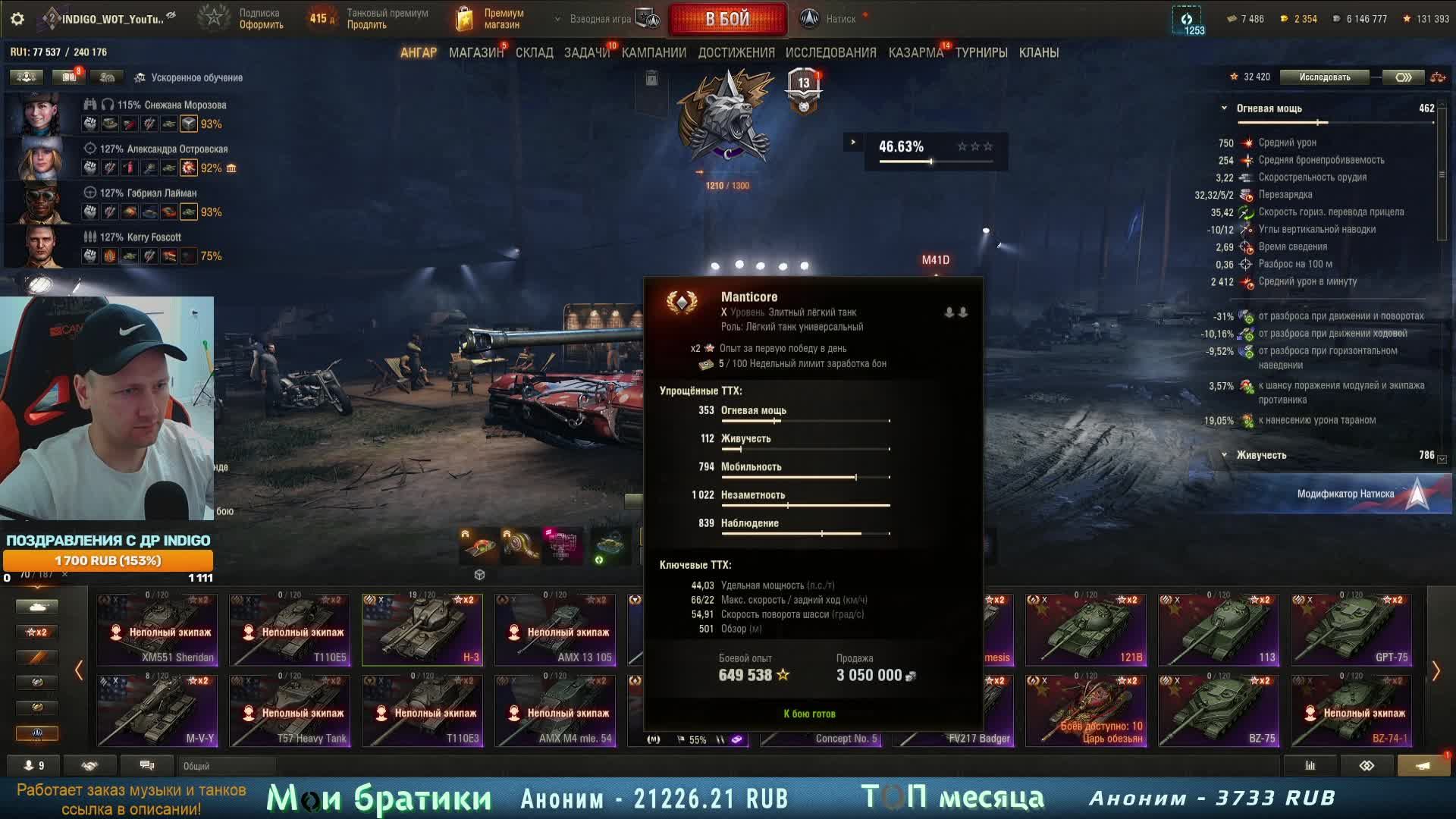 НАДРИСК или СРАЧ В ЭФИРЕ + рандомный чил | РОЗЫГРЫШ ЗОЛОТА Мира танков ⏩⏩⏩ Вся инфа про стримы здесь - https://t.me/indigo_wot 💲💲💲 Донат - https://www.donationalerts.com/r/indigo_wot #миртанков #wot #indigowot В конце стрима разыграю 500 золота среди зрителей. Для участия необходимо: присутствовать на стриме и написать кодовое слово в чате когда я об этом скажу, быть подписанным на мой канал Ютуб @INDIGOWOT и на Телеграм канал https://t.me/indigo_wot Всем удачи) ❗❗❗ Мои соцсети: ✅ Трово: https://trovo.live/s/INDIGO_WOT ✅ Инстаграм https://instagram.com/indigo_wot?utm_medium=copy_link ✅ Помощь каналу в развитии https://www.donationalerts.com/r/indigo_wot ✅ Карта МИР - 2204 1201 1517 9810 ✅ Группа ВКонтакте https://vk.com/club85981909 ✅ Поддержать канал: https://www.donationalerts.com/r/indigo_wot ✅ Телеграм (информация о стримах и моей жизни) - https://t.me/indigo_wot ✅ VK Play: https://vkplay.live/indigo_wot ✅ Tik Tok: https://www.tiktok.com/@indigowot?is_from_webapp=1&sender_device=pc ✅ Rutube: https://rutube.ru/channel/10748927 Другие полезные видосы: ✅ EviL GrannY нашел талант - INDIGO WOT | БЕШЕННЫЕ ЭМОЦИИ - https://www.youtube.com/watch?v=ueEY9gebws8 ✅ НАСТРОЙКИ ГРАФИКИ Мира танков 2024 для НАГИБА и ПРИЯТНОЙ ИГРЫ - https://www.youtube.com/watch?v=EllInGdv2I4&t=269s ✅ Как фармить серебро мира танков? СЕКРЕТЫ начислений! - https://www.youtube.com/watch?v=NWl6JipDhpI ✅ Что купить за боны в 2024 году. Мир танков! - https://www.youtube.com/watch?v=6O-aqNnjzIE&t=74s ✅ Как установить мод на отметку в вот? - https://www.youtube.com/watch?v=Kt0wbEihcEA&t=65s ✅ Куда пробивать объект 279 (р), зоны пробития с голдой и без - https://www.youtube.com/watch?v=PVugvr2eSeE ✅ Как быстро получить объект 279р пропустив 30% ЛБЗ WOT - https://www.youtube.com/watch?v=4mmILFH5mh0 ✅ КАК ВЫЙТИ ИЗ КЛАНА В ТАНКАХ WOT - https://www.youtube.com/watch?v=Uu21TGEzpY8 ✅ Char Lourd AP58 полный обзор + как играть | Мир танков - https://www.youtube.com/watch?v=sprQWQX9aKU Для поддержки - https://www.donationalerts.com/r/indigo_wot _______________________________________________ Моя цель - 5к подписчиков. #стримwot #танкионлайн #indigowot НАДРИСК или СРАЧ В ЭФИРЕ + рандомный чил | РОЗЫГРЫШ ЗОЛОТА Мира танков мир танков, танки, танки игра, стрим по танкам, world of tanks, wot, ворлд оф танкс, танки, лучший танк, стрим WOT, wot стрим онлайн, wot стрим прямой эфир, стрим танков, wot прямой эфир сейчас, wot стрим, танки стрим онлайн, танки прямая трансляция, танки прямой эфир, индиго вот, indigo wot, розыгрыш голды, 3 отметки, взвод