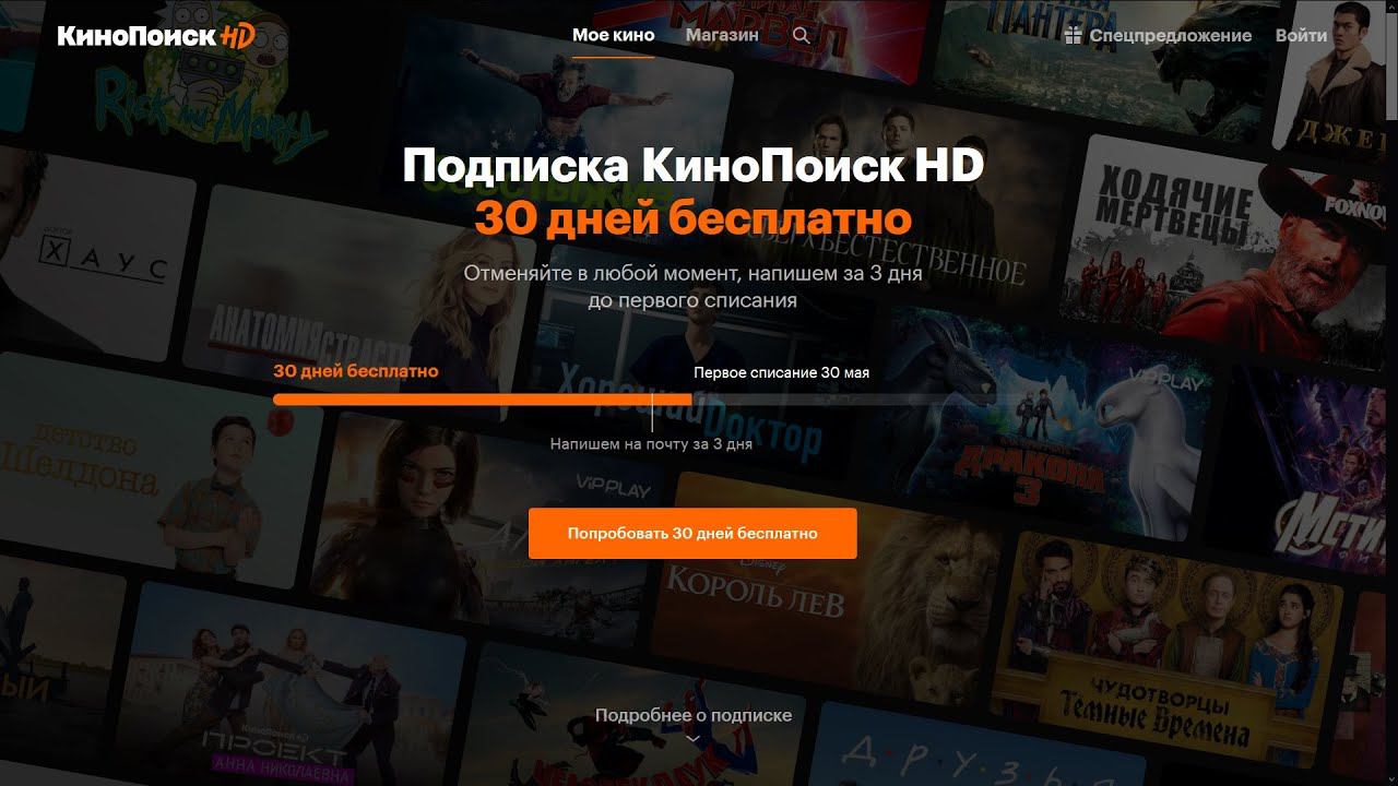 Подписка на КиноПоиск HD 30 дней бесплатно. Акция от Яндекса !)