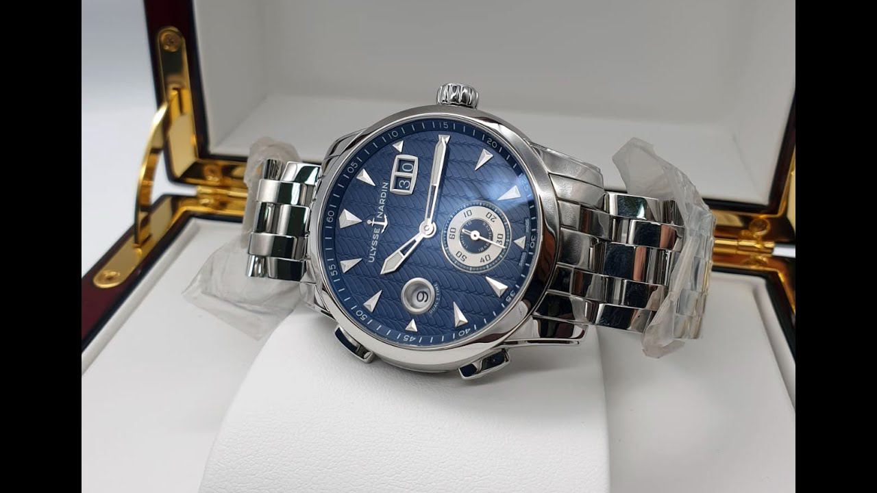 Лимитированная серия из 1846 экземпляров. Мужские часы Ulysse Nardin Dual Time 3343-126LE-7/93 выпущены в корпусе из нержавеющей стали диаметром 42 миллиметра и водонепроницаемостью до 30 метров. На синем циферблате отображаются при помощи центральных стрелок часы и минуты. Маленькая секундная стрелка расположена на 6-ти часах, время второго часового пояса на 9-ти часах, апертура с увеличенной датой находится в районе 2-х часов. Часы UN Dual Time ref. 3343-126LE-7/93 оснащены автоматическим мануфактурным калибром UN-334 с быстрой настройкой второго часового пояса, который устанавливается путём нажатия кнопок, и не требует перевода стрелок при помощи заводной головки, что очень удобно. Запас хода часов составляет 48 часов. Часы дополнены браслетом из нержавеющей стали со стальной застежкой Купить Ulysse Nadin Dual Time 3343-126LE-7/93 можно в SPBLUX. https://spbluxwatches.ru/catalog/watches/un/ulysse-nardin-dual-time-manufacture-3343-126le-7-931/ SPBLUX - Невское время точнее московского https://spbluxwatches.ru/