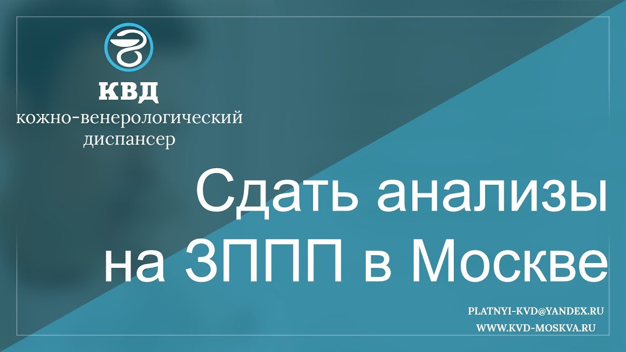 Сдать анализы на ЗППП в Москве нужно тем, у кого наблюдаются следующие симптомы: - гнойные, слизистые, кровяные и прочие выделения из половых путей, - жжение, рези и боли при мочевыделении, - боли в области репродуктивных органов и в нижней части живота, - зуд, появление новообразований (к примеру, папиллом), - - высыпания на половых органах, - подозрении на бесплодие, невынашивании беременностей. Подробнее - https://kvd-moskva.ru/analizy-zppp-cena/ Для подробной консультации по этому вопросу, обращайтесь в платный центр КВД-Москва. Наши телефоны: 8 (495) 642-30-37, 8 (495) 532-66-57 Наш e-mail: platnyi-kvd@yandex.ru Наш сайт: http://kvd-moskva.ru