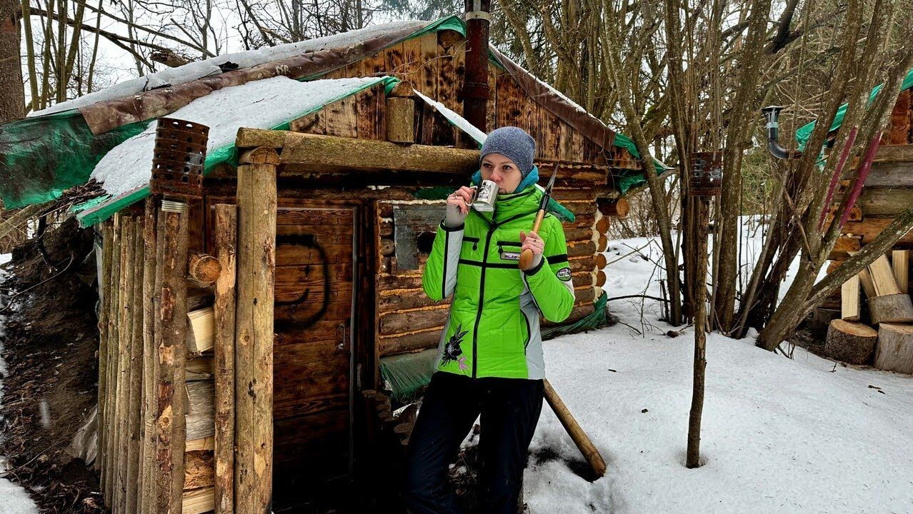 Очередной раз выбрался в землянку. На это раз взял с собой жену. После часа тяжёлой дороги мы оказались на месте и я приступил к роспуску брёвен на доски для нашего дальнейшего проекта, а жена приступила к приготовлению вкуснейшего блюда на гриле. #землянка #изба #лес #бушкрафт #жизньвлесу