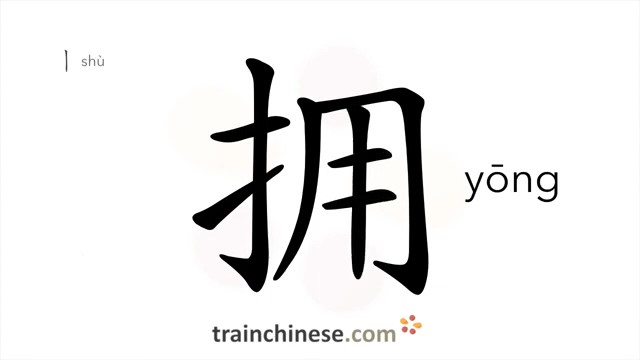 拥 (yōng) to embrace; possess; own, have; hug; support