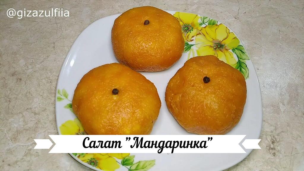 Салат «Манадринки» - это простой и вкусный салат, который готовится легко и просто, а выглядит очень эффектно и празднично! Ингредиенты на 6 порций: Отварная куриная грудка – 180 гр. Сыр – 100 гр. Отварные яйца – 2 шт. Чеснок – 2 зубчика. Отварная морковь средние – 3-4 шт. Сметана или майонез – 3 ст.л. Соль по вкусу Горошек черного перца для украшения – 6-8 шт. Способ приготовления: 1. Отварную куриную грудку (отварить в подсоленной воде) мелко нарезать. 2. Сыр натереть на крупной терке. 3. Отварные яйца (варить не более 10 минут) натереть на крупной терке. 4. Добавить чеснок через пресс. 5. Заправить сметаной или майонезом, посолить и перемешать до однородной консистенции. 6. Отварную морковь натереть на мелкой терке. 7. Расстелить на стол пищевую пленку или пакет. На пищевой пленке выложить «блинчик» из моркови. 8. В середину «блинчика» из моркови выложить начинку. 9. Собрать края пленки и придать форму мандарина. 10. Раскрыв пленку аккуратно выложить получившийся мандарин на тарелку. 11. Украсить горошком черного перца. Приятного аппетита! #салат #салаты #новогоднийсалат #салатнановыйгод #праздничныйсалат #рецепты #салатмандаринка салат, салаты, закуски, новогодний салат, салат на новый год, праздничный салат, рецепты, новый год, рецепт, что приготовить, рецепты на новый год, новогодние салаты, быстро, закуски на праздничный стол, закуски на новый год, салат мандаринка, мандаринки, как приготовить, что приготовить на новый год, закуска, еда, вкусный салат, доступно, рецепт салата, рецепты салатов, вкусные салаты, простой рецепт салата, новогодние рецепты, мандарин, готовим дома, красивый салат, новогодние закуски, меню на новый год, салат с сыром, праздничный стол, кулинария, закуска мандарин, рецепты закусок, новый год 2023,