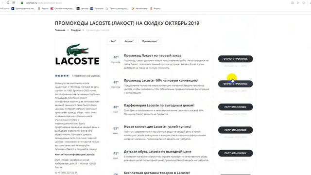 Промокоды на Lacoste ⏩ https://allpricer.ru/skidki/promokod-lakost __________________________________ Получаем промокод на Lacoste: промокод Lacoste, скидки и акции. Как получить промокод Lacoste? Поиск промокодов Lacoste можно на сайте, ссылка выше в описании! Для активации необходимо нажать "открыть промокод Lacoste", либо получить скидку для интернет-магазина Lacoste. __________________________________ Промокоды Lacoste на скидку - активируйте, время действия промокодов ограничено! Предложения постоянно обновляются! Подписывайтесь на рассылку сайта и получите скидку в Lacoste! __________________________________ #промокодынаLacoste #промокодLacoste #КакполучитьпромокодLacoste