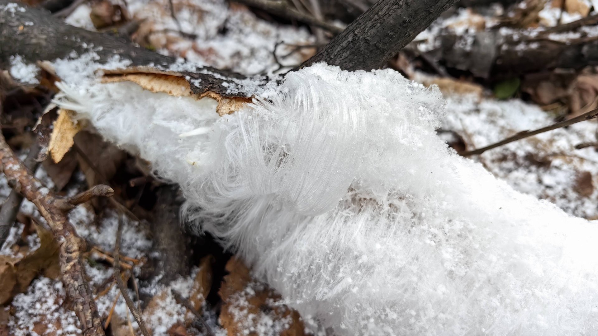 Красивое природное явление, которое можно увидеть в лесу, на увлажненной гнилой древесине лиственных пород, после морозной ночи. Лесоход