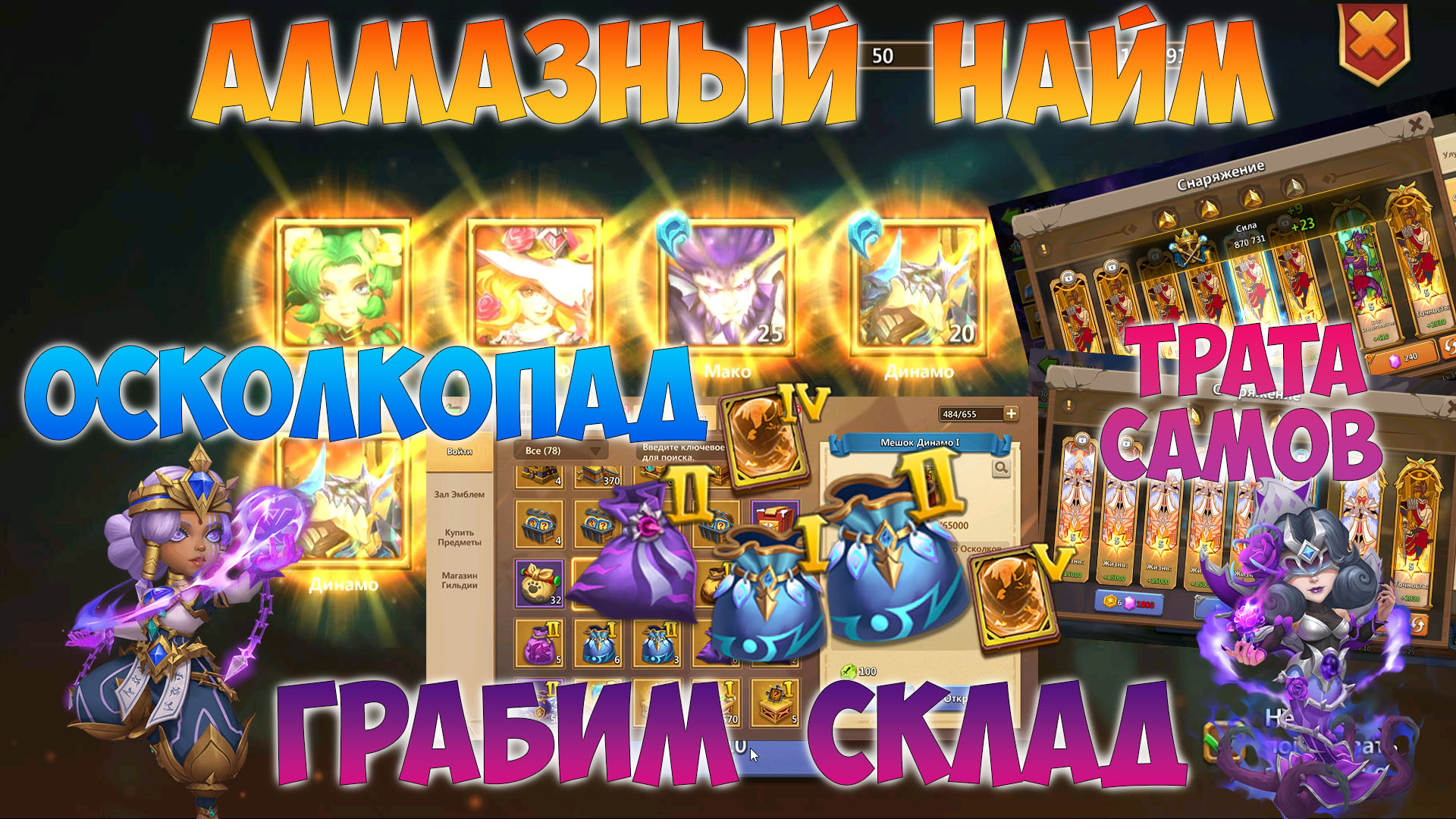 АЛМАЗНЫЙ НАЙ + СОЗВЕЗДИЯ, МЕШКИ ДРАКОНОВ, МЕГА УДАЧА, Битва замков, Castle Clash