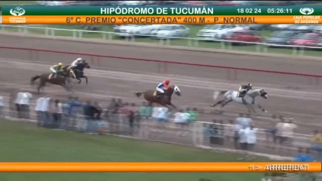 18/02/24 - P.N. CONCERTADA _______________________________________________________________________________ Posición - Anotado - Kilos - Jockey - Nº Mandil - Distancia - D. al 1° _______________________________________________________________________________ 1 GOT CHANGE 55 Camos Ruben O. 3 2 YODA 55 Moran Facundo R. 4 1 1/2 3 ARREPENTIDO 55 Suarez Hector A. 1 3 1/2 U BIENVENIDO SOY 55 Vizcarra Jose A. 2 3/4 cp Dividendos: (3) GOT CHANGE: Gdor. $ 2,10; Exacta (3-4): $ 132,70; Trifecta (3-4-1): $ 437,60.- Tiempo: 22" 2/5 CORRIERON TODOS FUENTE: Secretaria de Carreras Hipódromo de Tucumán. Juan Cumin - Juan Diaz