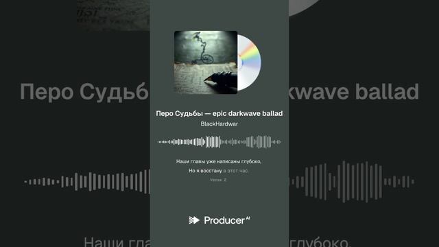 Перо Судьбы — epic darkwave ballad Epic darkwave ballad, neoclassical, cinematic orchestration, sweeping strings, pipe organ, deep piano chords, ethereal choir voices, solemn atmosphere, brooding bass, theatrical dynamics, melancholic minor key, haunting reverb, dramatic crescendos, ancient and timeless mood, powerful female vocals, D Minor, 72 bpm Не стал исправлять косяки ИИ, пускай позориться:) https://www.producer.ai/BlackHardwar https://songly.gift/ru/app/videos/create https://sinonim.org/song#res Lyrics Verse 1 В зале, где лунная пыль оседает на камень, Древнее молчание хранит покой. Книга Судеб лежит, её страницы дышат, Невидимый писарь ведёт рукой. Перо волшебное пишет наши судьбы, Буква за буквой, год за годом летит. Помпеи пали, но эхо их не забыто, Зал наполняется — предупреждение звучит. Chorus И дрожит рука над страницей, Капля чернил — и мир изменён. Перо ведёт, куда нам стремиться, Судьбою каждый путь предрешён. Но я порву страницу против Рока, Пусть гнев небес обрушится на нас. Наши главы уже написаны глубоко, Но я восстану в этот час. Verse 2 Лунный свет танцует по древним сводам, Книга Судеб раскрыта, как рана, что не зажить. Писарь безликий знает все исходы, Перо его решает, кому жить. Помпеи — это знак, предостережение, Пепел и огонь хранят урок. В зале слышен шёпот, тревожное биение, Перо скрипит — судьба на порог. Bridge Я вижу руку, что дрожит над бездной, Чернильный след ведёт меня во тьму. Но даже если путь наш безысходен, Я не склонюсь перед Судьбы письму. Разорву страницу, брошу вызов Року, Пусть небо обрушит свой гнев и страх. Мы написаны уже, но не одиноки, Наши главы живут в одних мирах. Final Chorus И дрожит рука над страницей, Капля чернил — и мир изменён. Перо ведёт, куда нам стремиться, Судьбою каждый путь предрешён. Но я порву страницу против Рока, Пусть гнев небес обрушится на нас. Наши главы уже написаны глубоко, Обе наши главы — вместе, здесь, сейчас. Наши главы написаны, Наши главы написаны, Обе наши главы написаны...