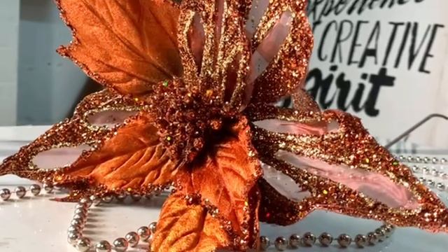 Искусственная пуансеттия на стебле ФАНТАЗИ ДЕ КЮИР, полиэстер, медная, 69 см, 86675