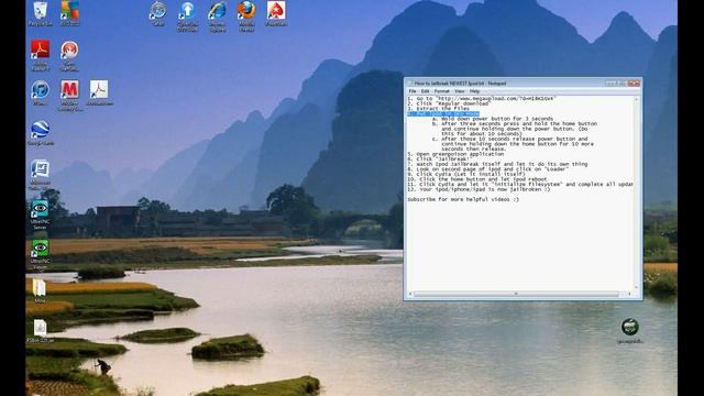 This is the easiest way to jailbreak ANY iDevice on ANY firmware 4.2.1 and lower!!!! The process is very simple! 1. Go to http://jailbreak-it.weebly.com/ 2. Click " download" 3. Extract the files 4. Put ipod in DFU Mode a. Hold down power button for 3 seconds b. After three seconds press and hold the home button and continue holding down the power button. (Do this for about 10 seconds) c. After those 10 seconds release power button and continue holding down the home button for 10 more seconds then release. -If you successfully put your ipod in DFU mode the iPod screen will be black and not have an iTunes logo. 5. Open greenpoison application 6. Click "Jailbreak!" 7. Watch Ipod Jailbreak itself and let it do its own thing 8. Look on second page of ipod and click on "Loader" 9. Click Cydia (Let it install itself) 10. Click the home button and let ipod reboot 11. Click Cydia and let it "initialize filesystem" and complete all updates 12. Your ipod/iphone/ipad is now jailbroken :) Subscribe for more helpful videos :)