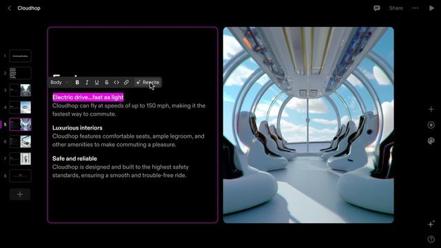 Создаем любую презентацию в пару кликов Tome (https://beta.tome.app/) — это нейросеть, позволяющая генерировать презентацию с картинками на любую тему с помощью всего лишь одного запроса. VPN не нужен. Просто пройдите регистрацию, а затем вбейте тему презентации, остальное за вас сделает ИИ. С такой нейронкой и PowerPoint не нужен, согласны? SV studio