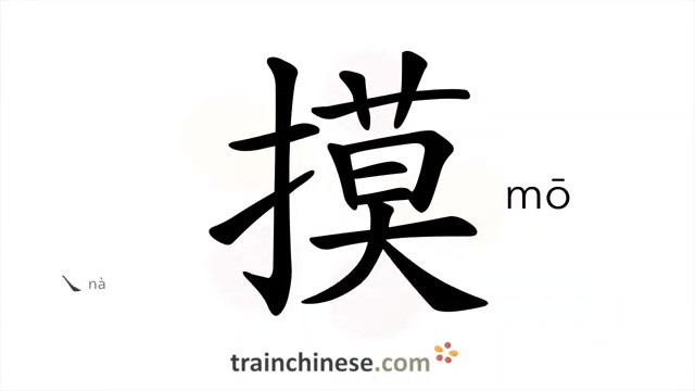 摸 (mō) to touch; feel; find out; stroke; grope; feel out; feel with the hand; copy